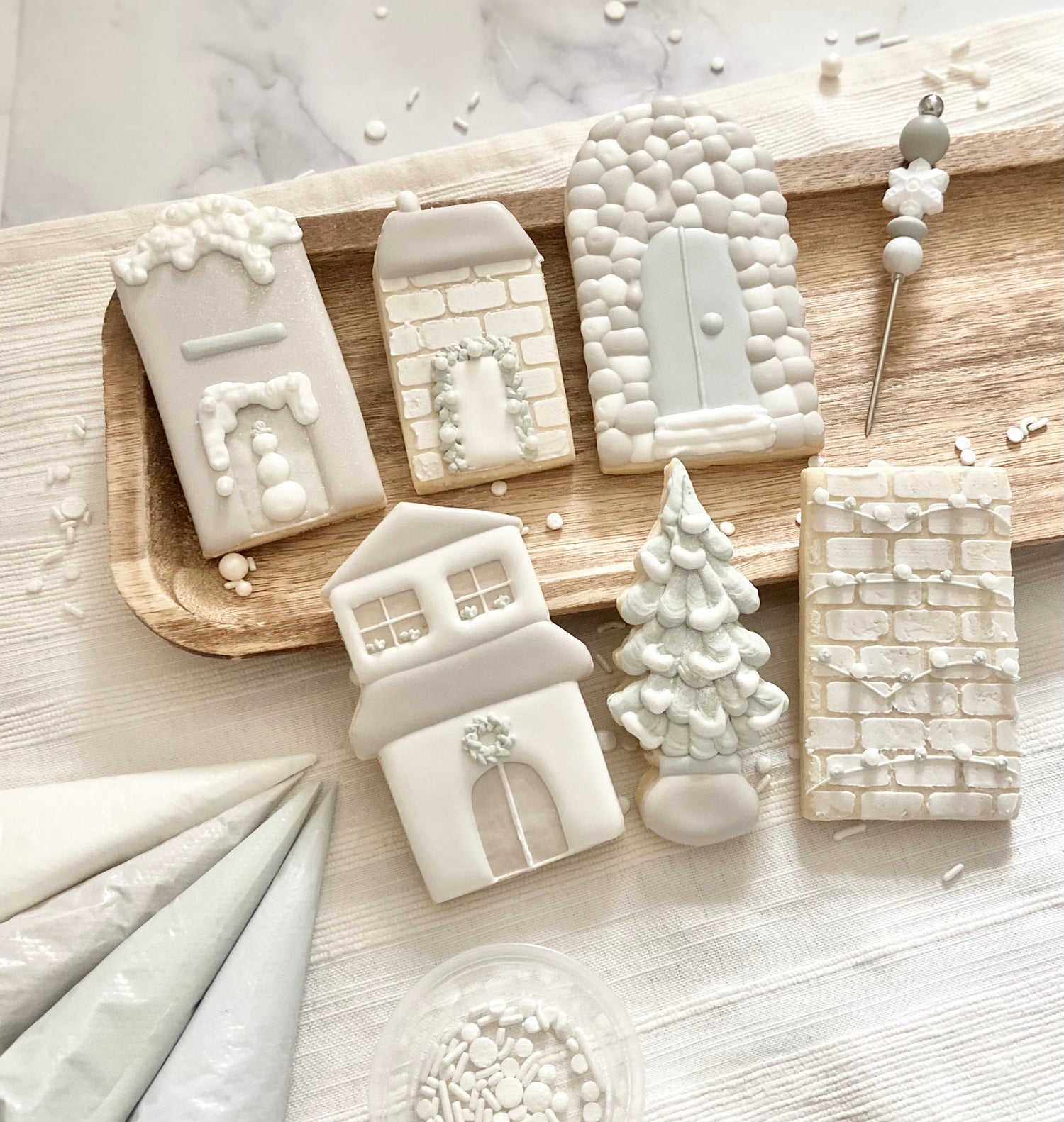 We are so excited to be partnering with Sawmill Market for a series of cookie classes this Fall/Winter. This class includes 5 cookies, 4 icing colors, a take home box, a custom cookie scribe, step-by-step instruction, as well as my signature cookie and royal icing recipe card. Our goal is to teach new techniques in every class, this class offers the opportunity to use an icing scraper to master gradient color backgrounds!