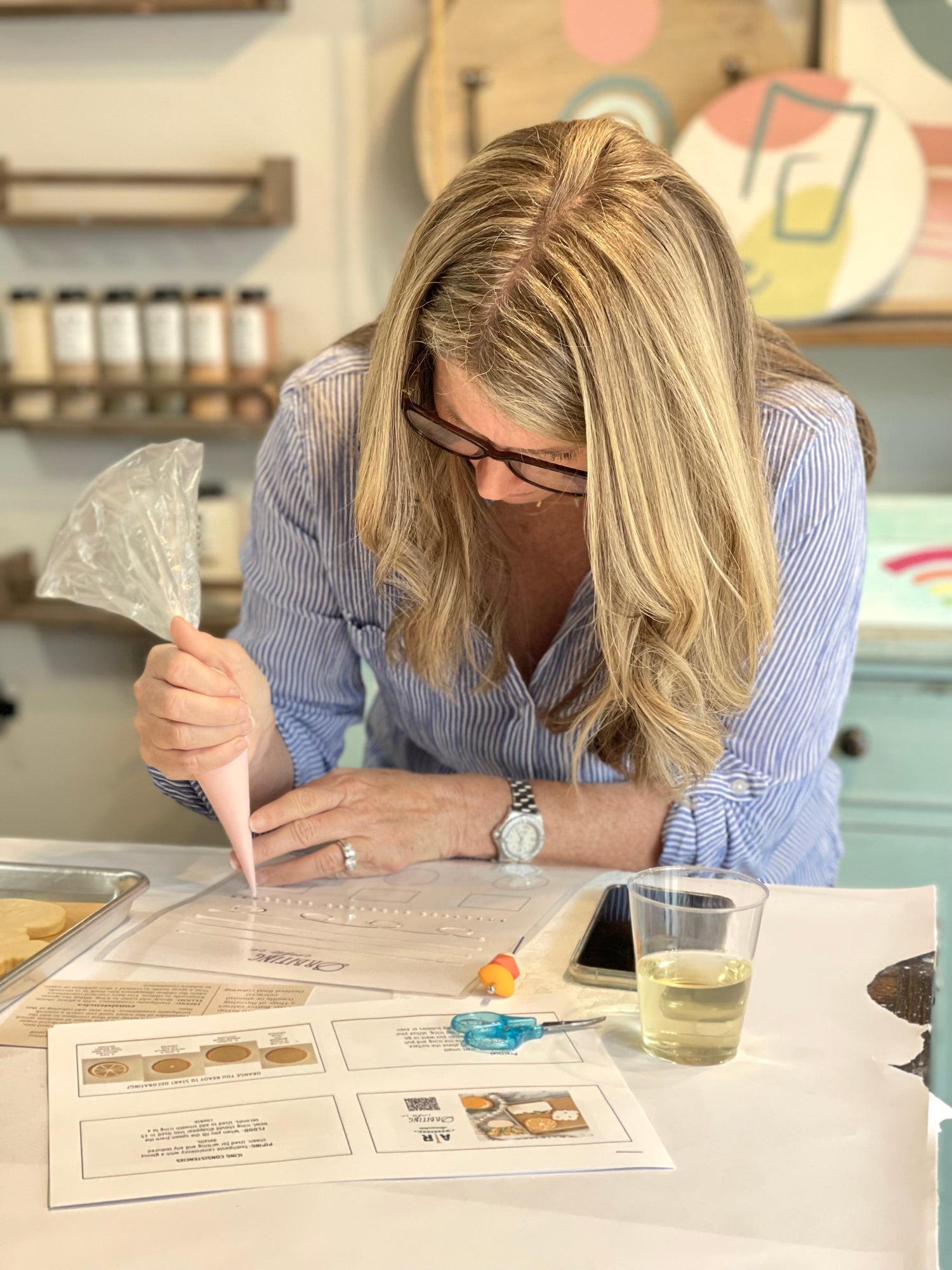 This class includes 3 cookies, 3 icings, a take-home box, custom cookie scribe, my signature cookie and icing recipe card, and 1.5 hours personalized instruction.